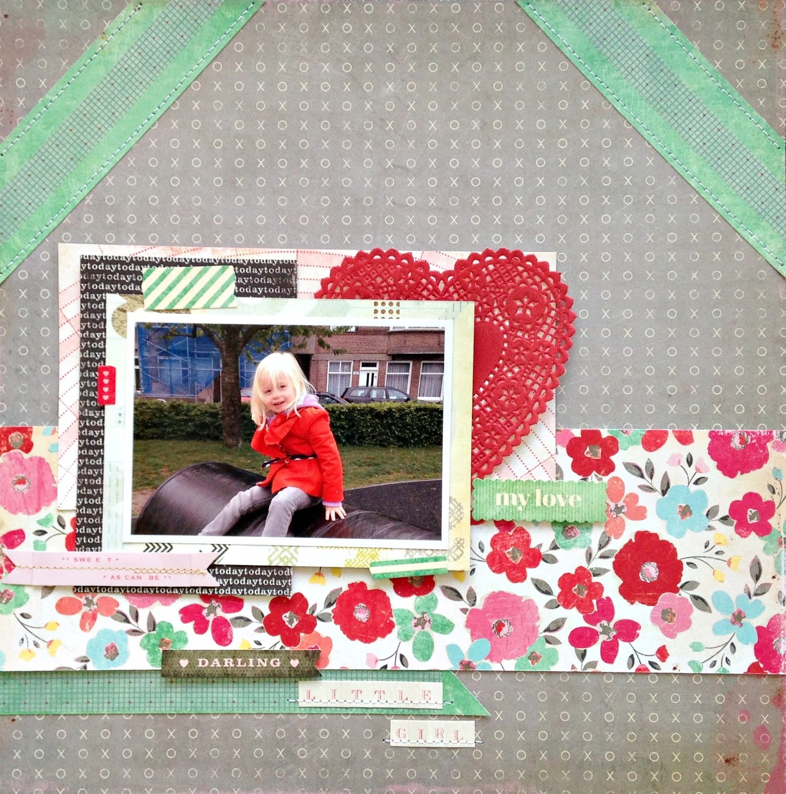 Bella Blvd Baby collections. Mostly it was the Baby Boy collection I had left and I challenged myself to make a layout with a baby girl photo. It wasn't that easy, but I think it worked out well.